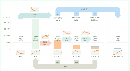 そうですね、ゴールに対して、どの部分を改善するか、どういうシナリオを使うかという提案をします。毎回ゼロから考えるのではなく、社内に数百を超えるシナリオパターンがあるので、そこからマッチするシナリオ選んでそれをベースに提案します。シナリオは1つのステップで表示することもできますし、連続してガイドを表示し続けるストーリー型のシナリオも可能です。