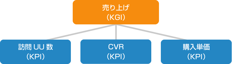 例えばECサイトで「売り上げ」が最終目標のKGIならば、それらを分解した中間目標のKPIが「顧客数」や「顧客単価」であるといった具合です。