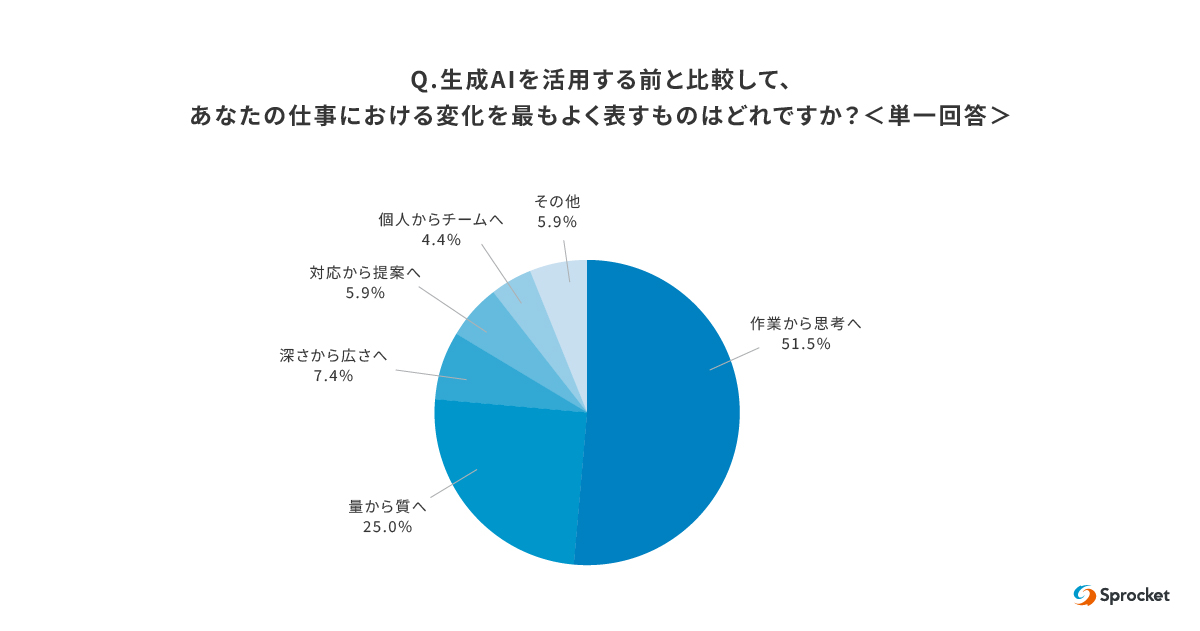 その結果、「作業から思考へ」が51.5%で最多、「量から質へ」が25.0%と続きました。